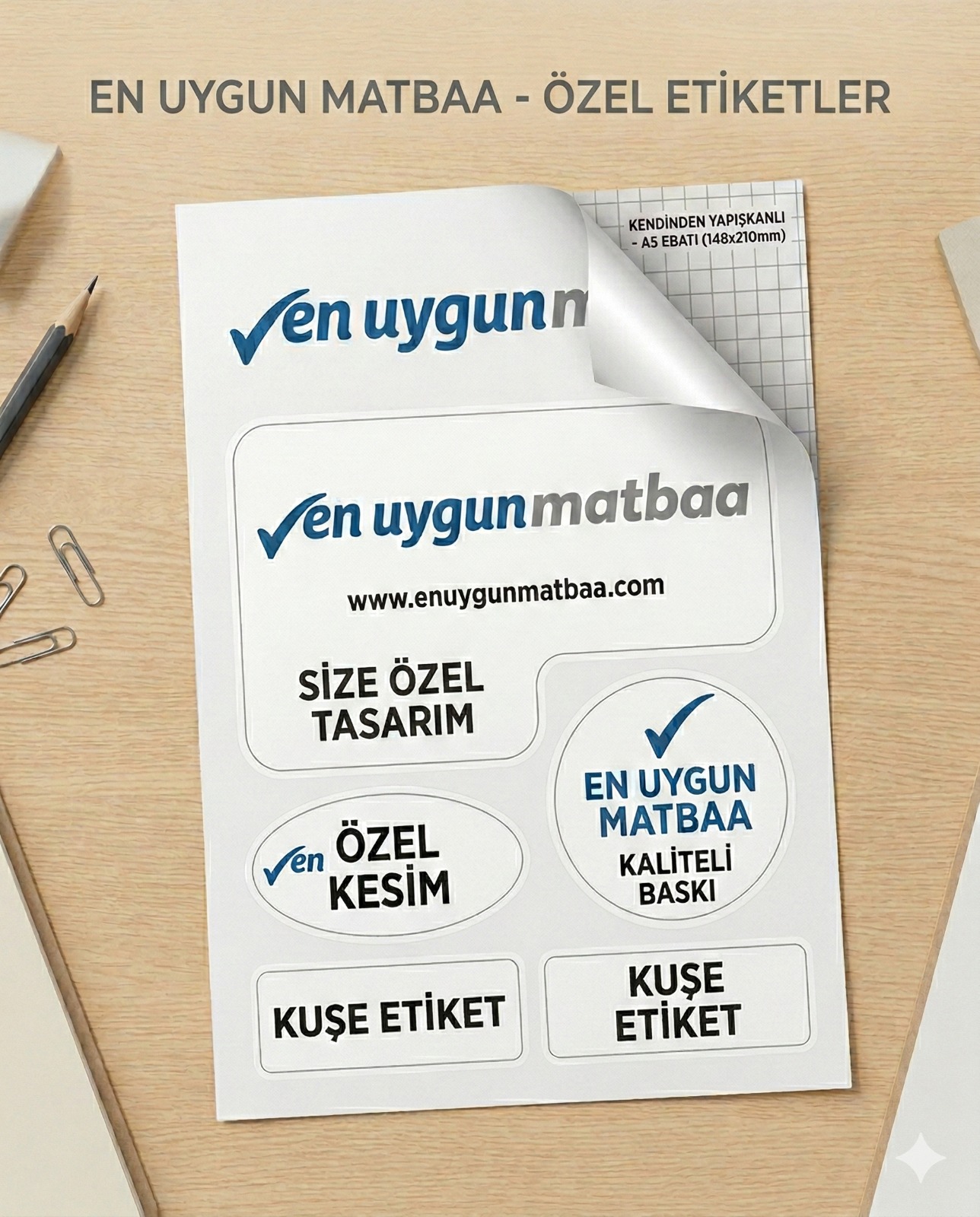 En Uygun Matbaa, modern ofset ve dijital baskı makineleri ile yüksek kaliteli özel kesim kuşe etiket baskı hizmeti sunmaktadır.